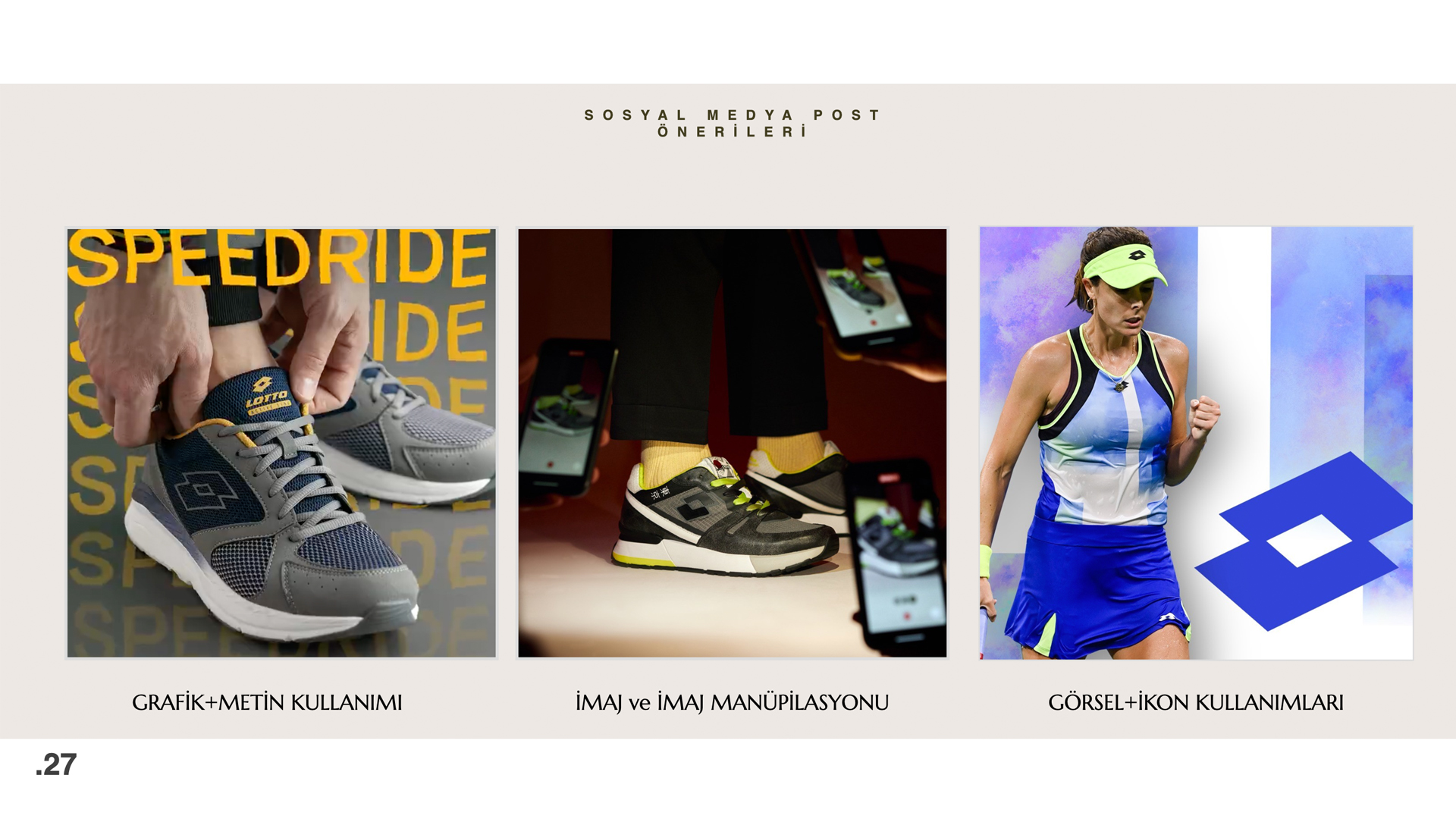Biz, Lotto’yu yalnızca bir spor markası değil, sahada ve günlük hayatta enerjiyi, dinamizmi ve tutkulu bir yaşamı temsil eden bir marka olarak konumlandırdık.Çalışmalarımızda gördük ki, insanlar artık yalnızca performans değil; kendilerini ifade edebilecekleri, tarzlarını yansıtabilecekleri ve günlük hayatlarına uyum sağlayacak markalarla bağ kurmak istiyor.
